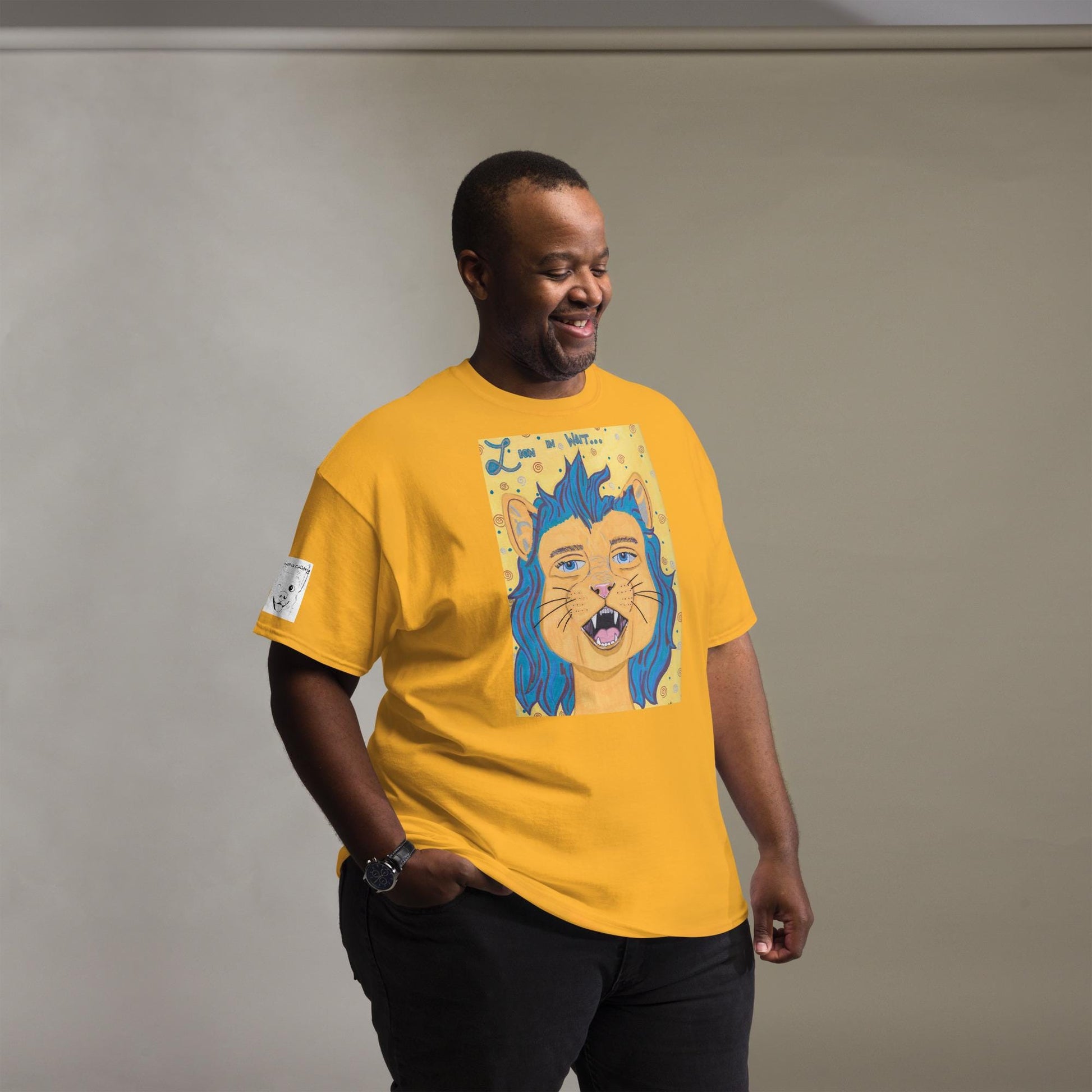 Unleash your wild side with this unisex t-shirt, featuring the Lion In Wait design in GrungePup’s grunge-pop style. The fierce lion silhouette with bold splatters and earthy tones brings a primal edge—perfect for art lovers and casual wear.